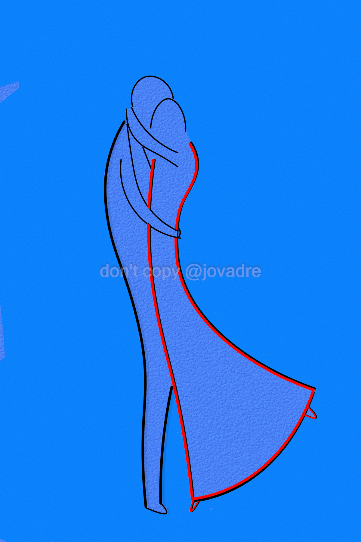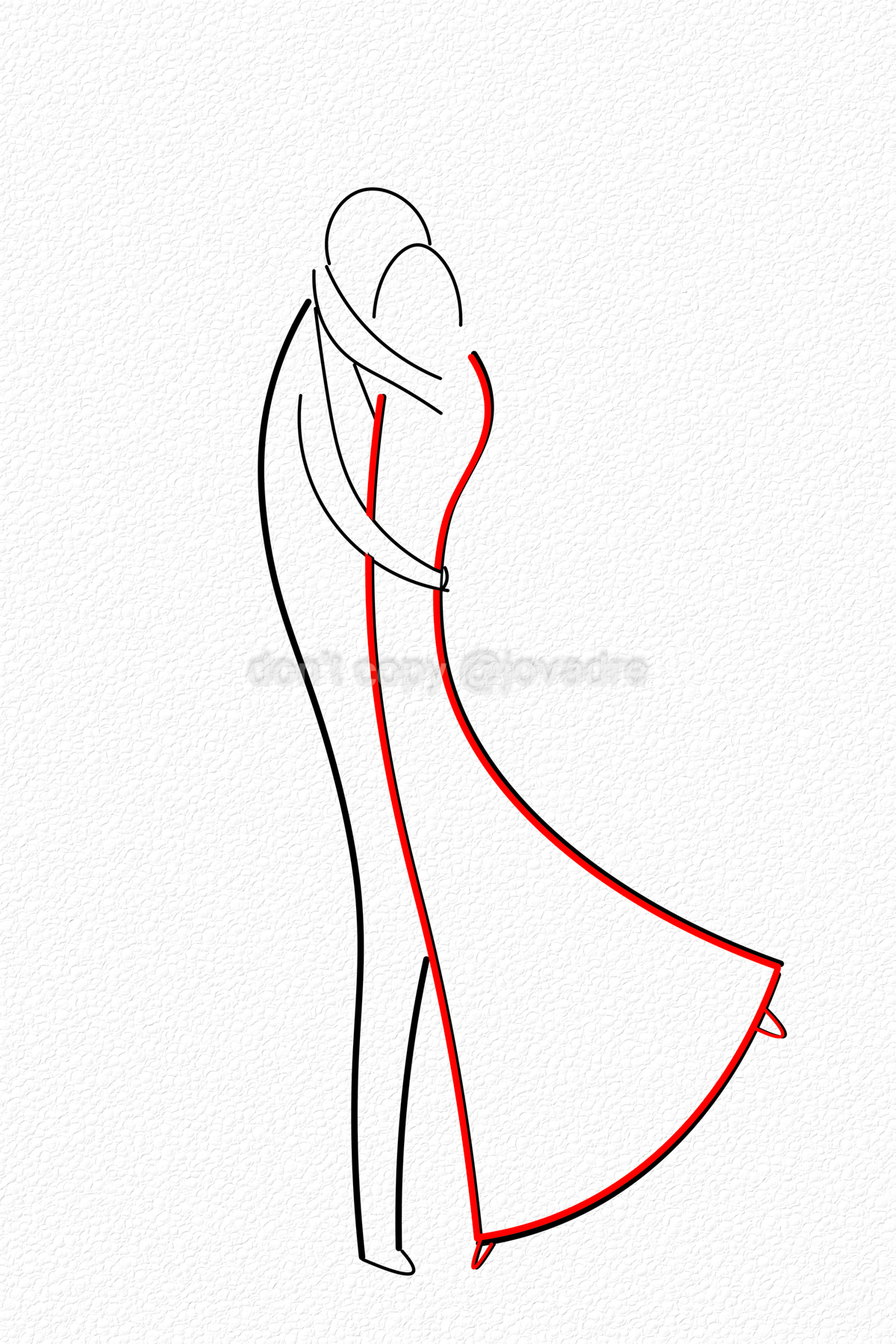 De oorspronkelijke zwart lijn bij het vrouwenfiguur heb ik als schaduwlijn gebruikt.