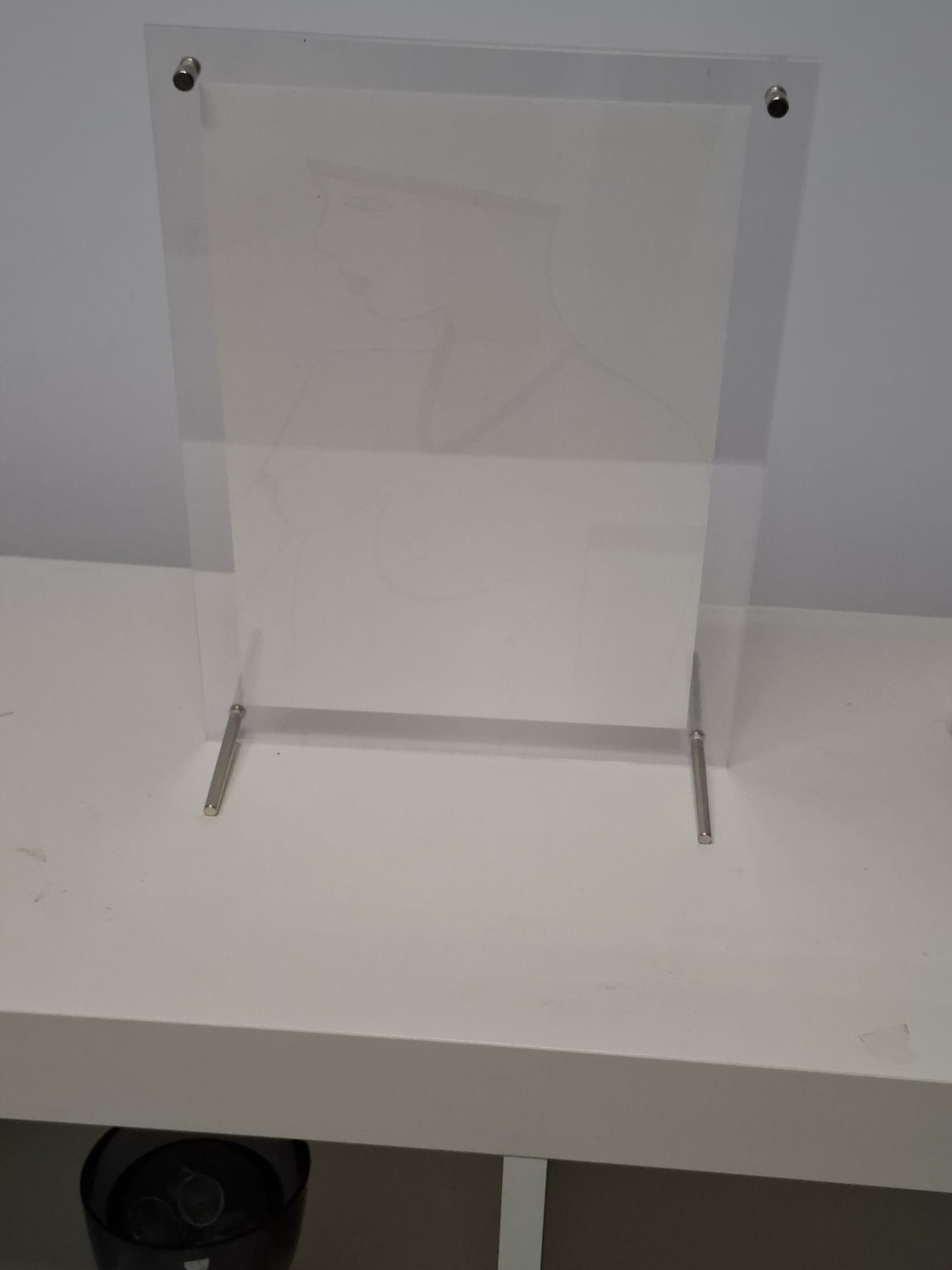 Foto geklemd tussen 2 acrylplaatjes. Afmeting 13x18x1 cm.