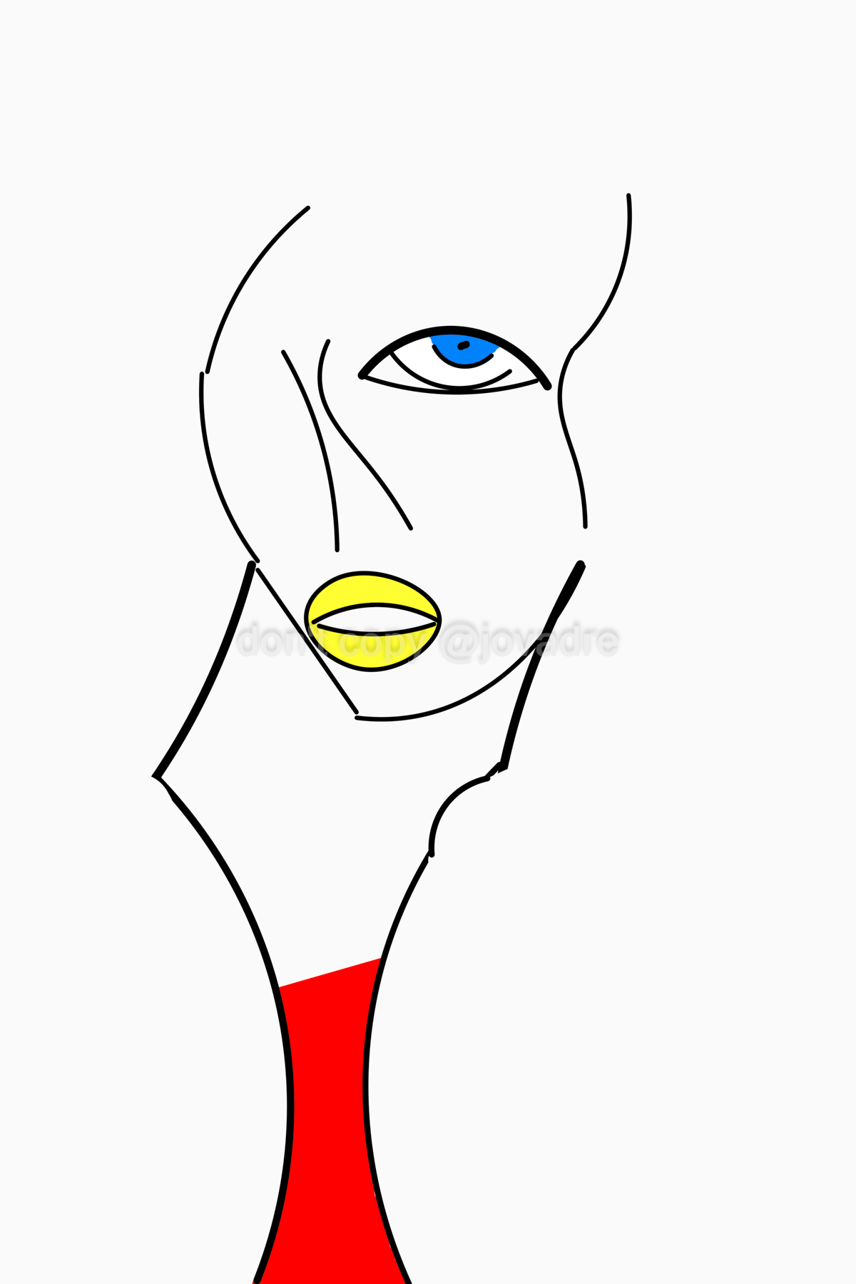 See you, ook met één oog, figuratief getekend. Nieuwe wegen bewandelen, ook digitaal is spannend, uitdagend en leuk om iets nieuws te leren. Witte achtergrond vond ik het meest passend. Het digitaal getekende figuur is opgebouwd uit zwarte getekende lijnen. Ik koos nu voor een combinatie van de drie primaire kleuren als accenten, de oorspronkelijke zwarte tekenlijn is daarmee grotendeels in tact gebleven deze keer.
