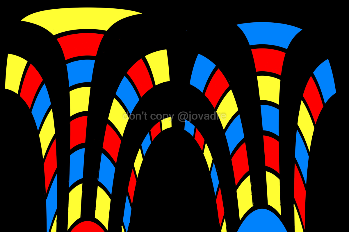Ook dit werk is digitaal getekend en kenmerkt zich ook door het uitsluitend werken met de 3 primaire kleuren, rood, geel en blauw. Ik doe het anders, dus toch geen Mondriaan, hij beperkte zich tot alleen rechte lijnen. Mijn primaire kleuren vind je terug in veel verschillende vormen, lijnen en vlakken. De 3 primaire kleuren insireren mij tot nieuw werk en ontdekken van nieuwe mogelijkheden een nieuw avontuur zeg maar. Maar ook nu weer, geen Mondriaan.